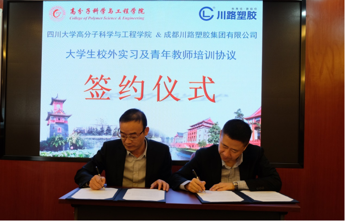 10月30日下午,成人漫画 与成都川路塑胶集团有限公司大学生校外实习及青年教师培训合作协议签订仪式在高分子材料工程国家重点实验室320会议室举行。成人漫画 “双一流”建设与质量评估办公室主任李忠明教授,成人漫画 党委书记牟德富、高分子材料加工工程系主任尹波教授,成都川路塑胶集团有限公司副总经理徐翔、副总工程师王兴华和贾立蓉、管材厂厂长肖玉兵、人力资源部经理李忠出席签约仪式。