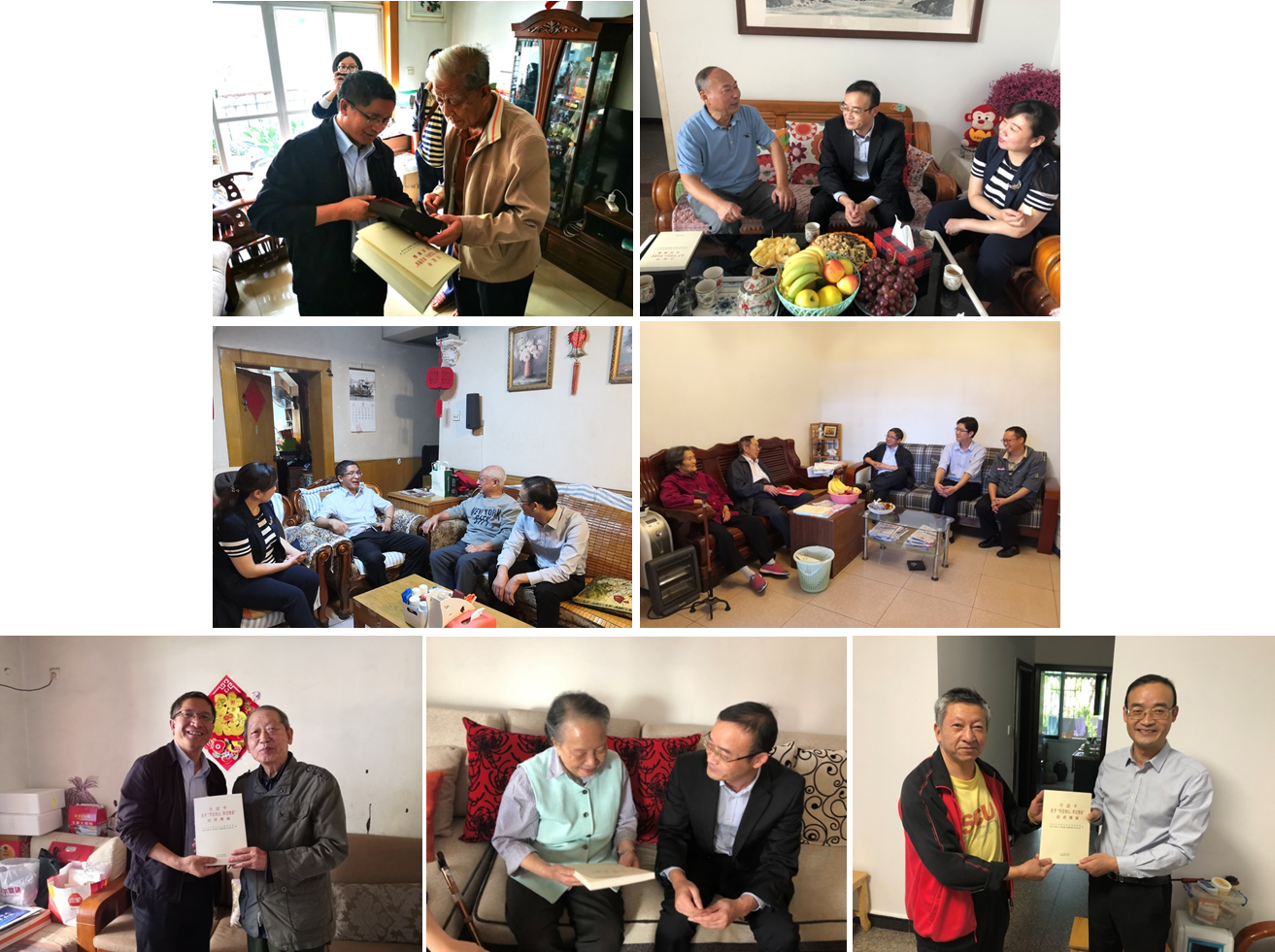 党委书记牟德富和副院长李艳梅一行走访慰问了江之桢、胡泽容、丁明双和赖培信等老同志,院长傅强和副书记钱祉祺一行走访慰问了黄锐、王贵恒、张举祥和黄永玉等老同志,并为老党员同志送上《习近平新时代中国特色社会主义思想学习纲要》,希望他们在安享晚年的同时,也能关心国家大事、学校以及学院的发展建设,积极参与“不忘初心、牢记使命”主题教育活动。院长傅强还为黄锐老师送上了由中共中央、国务院、中央军委颁发的“庆祝中华人民共和国成立70周年”纪念章,感谢他为学院发展建设做出的贡献。