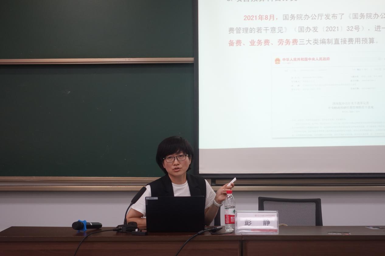校科研经费管理科科长、高级会计师彭静以《科研经费使用中的财务风险》为题,对科研经费的分类、预算、管理政策等进行了详细讲解。