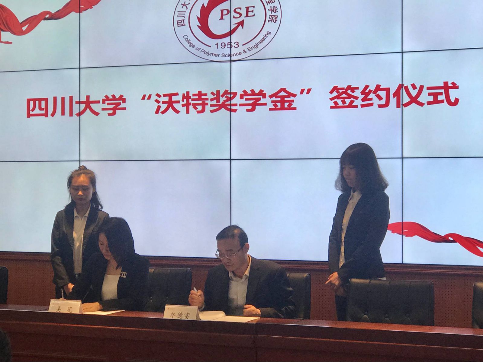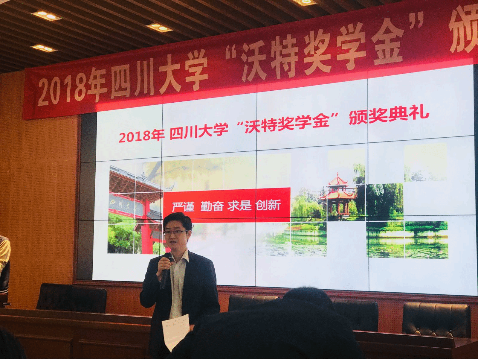 本次颁奖典礼由成人漫画 党委副书记钱祉祺主持。在介绍了到场嘉宾以及获奖情况后,成人漫画 党委书记牟德富教授致欢迎词,他首先代表学院感谢深圳市沃特新材料股份有限公司设立“沃特奖学金”。今年是深圳市沃特新材料股份有限公司在学院设立沃特奖学金的第五年,今年深圳市沃特新材料股份有限公司又增加了在川大高分子设立的奖学金,充分体现出沃特公司对川大高分子的重视,作为高材人,在感谢深圳市沃特新材料股份有限公司给予大力支持的同时,更要学习沃特公司的核心理念,要从校园开始就形成诚信与感恩的良好品质,将其带入社会浪潮中,并伴随自己的一生。
