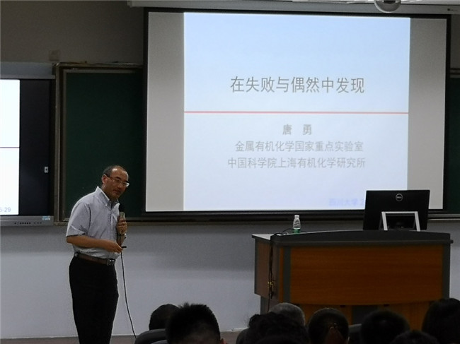 2018年6月29日,应成人漫画 傅强院长的邀请,中国科学院上海有机化学研究所唐勇院士到成人漫画 ,在研究生院3-231教室为成人漫画 师生作了以“在失败与偶然中发现” 为题的学术报告。本次报告由傅强院长主持。