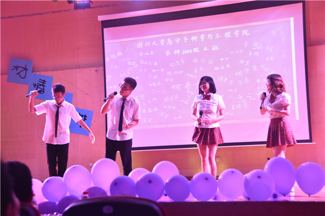 晚上七点半,晚会在2013级3班四位同学的歌曲串烧拉开帷幕。首先,牟德富书记为晚会致辞,他代表成人漫画 的领导及老师对13级同学们顺利毕业表示祝贺,并对同学们美好的未来表达了期许和祝愿。紧接着晚会在各种舞蹈、小品中被推向一个又一个高潮,其中老中青艺术团的舞蹈《咖喱咖喱》表现出了当代大学生的青春活力,研究生的双人舞《七号布鲁斯》唯美优雅,2013级材料3班的小品《兄弟》在诙谐幽默中表达出大学同学之间的真挚情谊,期间,最温情的节目当属傅强院长的独唱《窗外》,朴实的嗓音、真切的歌词无处不透露出学院对学生们的真切关爱;13级辅导员徐源廷老师和梁瑜老师的合唱《当》则是将晚会推向最高点,辅导员用简简单单的几句话描述了这大学四年和同学们一起度过的日子,虽然简单却在其中包含了对同学们成长的欣慰,对离别的不舍以及对同学们未来的美好祝愿,让人不禁泪湿眼眶。最后,《我们的纪念日》由2013级东四310寝室的六位女生共同演绎,将大学的生活浓缩在一幕幕情境中,渗入进每一句歌词里,同时也唱进了每一个人的心里。整场晚会老师和同学们几度哽咽、眼眶湿润,最终在《我们的纪念日》中,在主持人最后美好的祝愿中,落下帷幕。