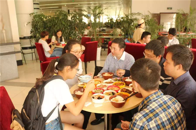 开幕式结束,来看我们的师生午餐会吧~在这里,你能吃到可口的饭菜,还能与学院领导老师们谈论你想了解的一切,吃饭学习两不误~是不是很棒?