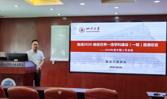 冯玉军副所长代表高分子研究所作工作报告。他总结了2020年研究所的科技工作概况,对比了2018-2020年“双一流”建设目标任务和2020年目标任务及重要指标的完成情况,分析了2020年高研所发展面临的新形势及科研核心指标,并对学校新学期工作布置会内容及政策进行了详细解读,希望全体教职工在重视实验室安全环保工作的同时继续奋战2020年,推动高研所的进一步发展,助力世界一流学科建设(一期)圆满收官。