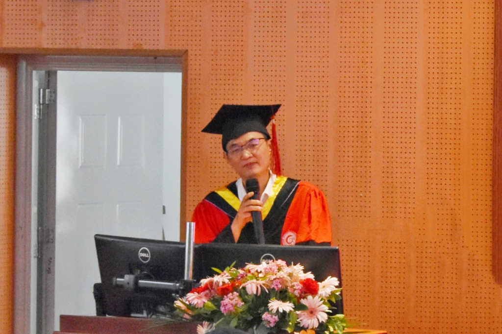 在庄严的国歌声中,2022届毕业典礼拉开帷幕。伴随着全场热烈的掌声,赵长生院长为本次毕业典礼做重要讲话。他代表学院向顺利毕业、即将开始崭新人生旅程的2022届毕业生表示衷心的祝贺与殷切的希冀。他勉励毕业生同学以“路漫漫其修远兮,吾将上下而求索”的精神,心怀家国,探索创新,争做明日栋梁。