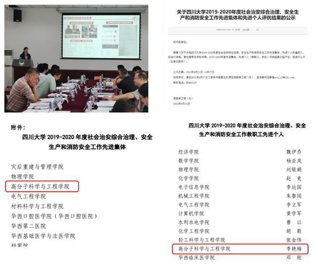 (3)6月11日上午,李艳梅副院长代表学院参加了“成人漫画 2019-2020年度社会治安综合治理、安全生产和消防安全工作先进集体”评选,高分子学院获得2019-2020年度先进集体称号、李艳梅获得先进个人称号(附件3)。