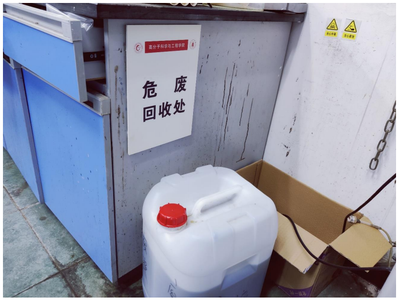 (3)5月17日,清理了学院主楼四楼楼道内办公桌;5月24日,更换了高分子学院公共区域内的防烟面罩;5月23-27日,学院统一发放了“危废回收处”标志牌(附件2)。