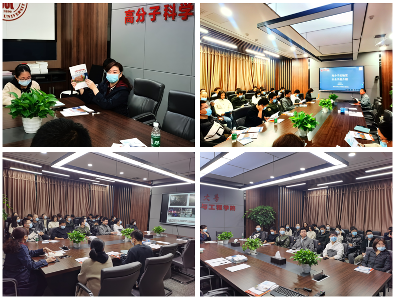 (5)11月25日下午,高分子学院在主楼207会议室召开11月份安全工作会议,会议总结了“119消防宣传月”活动的内容。会议结束后,安保工作小组对全院实验室进行安全大检查。