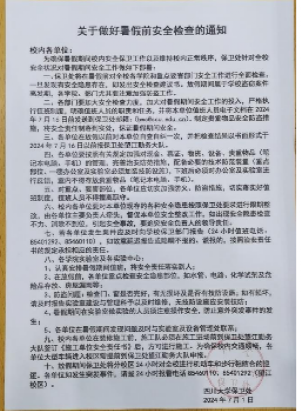 附件3:《关于做好暑假前安全检查的通知》