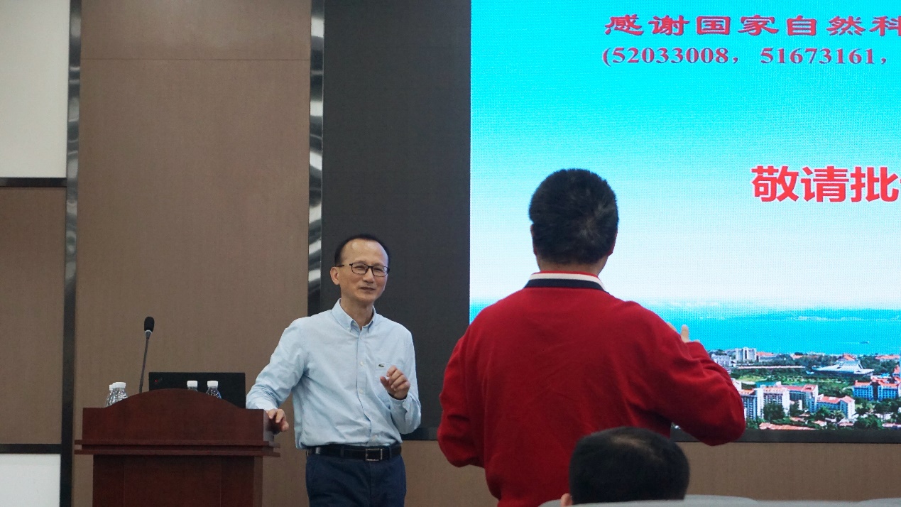 精彩的报告引得老师和同学们争先提问,戴教授也耐心地为老师和同学们答疑解惑。陈教授也向戴教授请教要如何才能把水凝胶粘/脱粘的科学原理应用到自己所涉及的领域中,两位教授和现场老师们也就此展开了一番激烈的探讨,彼此交流促进思维的碰撞,撞击的火花让在场的每一位老师同学都深受鼓舞!