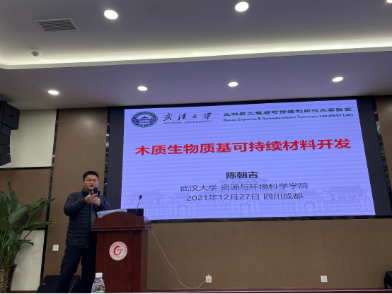 2021年12月27日,武汉大学资源与环境科学学院陈朝吉教授/博导应邀来到成人漫画 进行学术交流。在高分子学院科教楼209报告厅,陈教授为一百多位师生带来题目为“木质生物质基可持续材料开发”的精彩报告,报告由李乙文研究员主持。