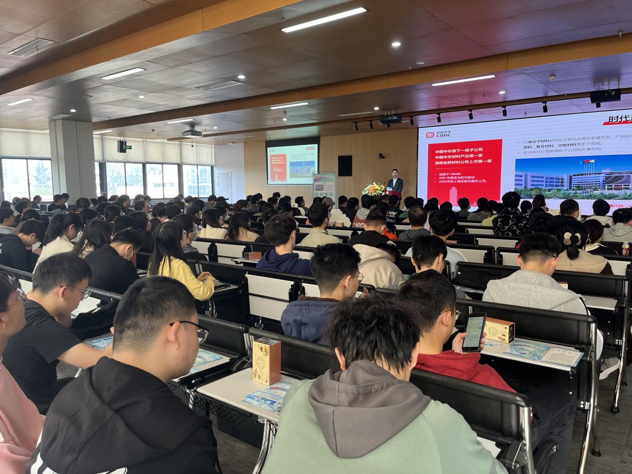 成人漫画 院长赵长生主持了校企技术交流会,时代新材料科技股份有限公司副总经理彭超义带领公司技术团队与成人漫画 的相关科研团队进行了深入交流。时代新材料科技股份有限公司党委副书记李华伟等开展了2023年春季招聘宣讲活动,来自高分子、化学、机械等多个专业的200余名同学参加了招聘会。