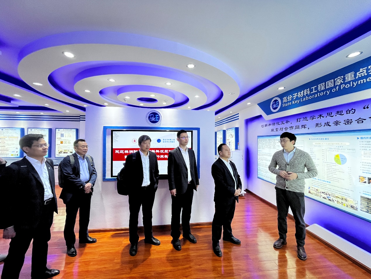 会前,彭华文董事长一行参观了高分子材料工程国家重点实验室、徐僖院士纪念馆,考察了川大高分子学科的历史、科研团队建设、主要的研究方向、科研项目与成果转化以及国内外合作与交流成果等情况。