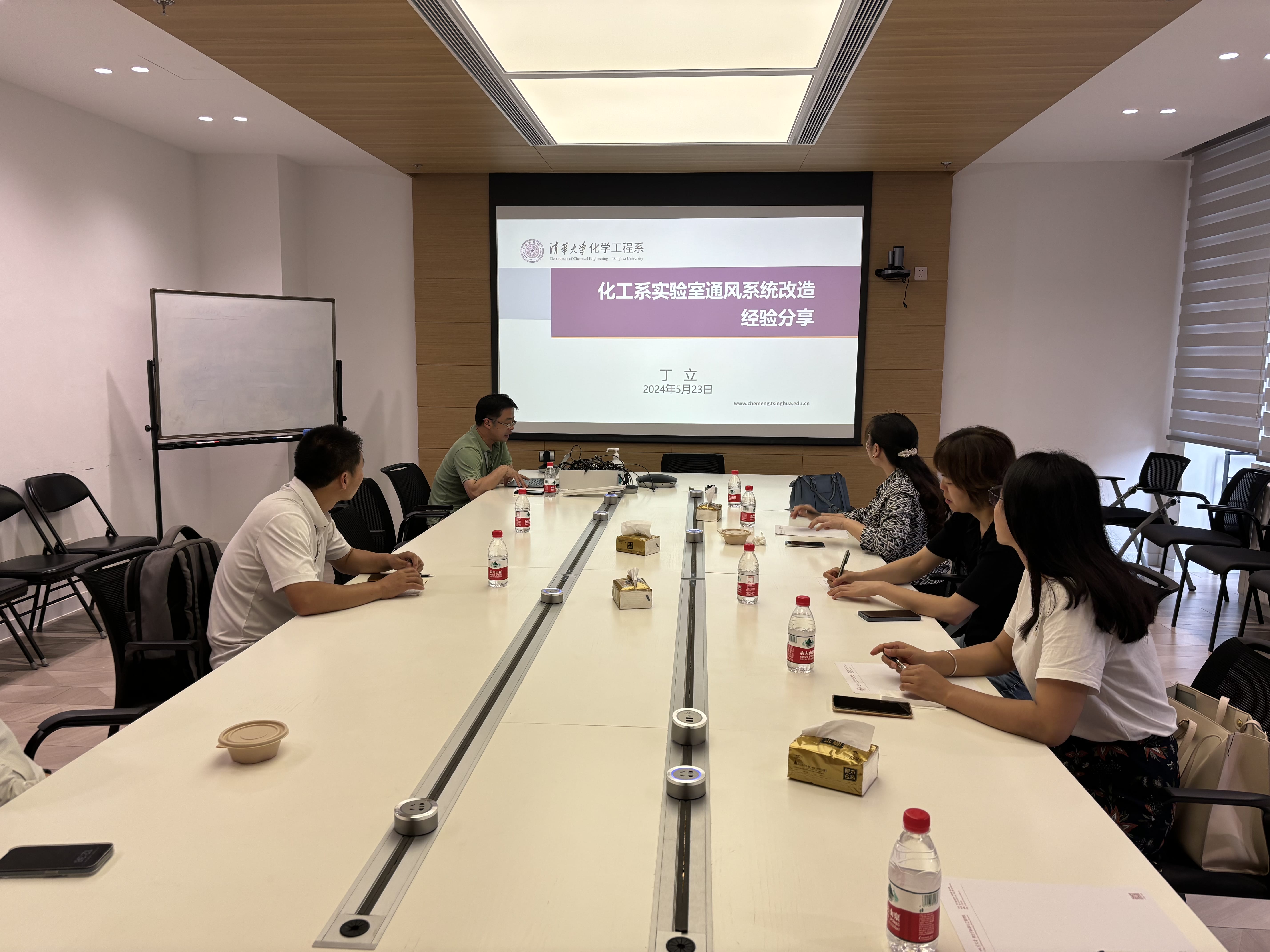 5月23日下午,副院长李艳梅一行在清华大学化学工程系就实验室建设与管理、实验室安全管理等方面展开调研学习。化学工程系高级工程师丁立、杜奕就实验室通风系统、装修改造等方面做了详细的介绍,并陪同参观了改造后的实验室,为后期先进材料科研大楼的实验室建设提供了宝贵经验。