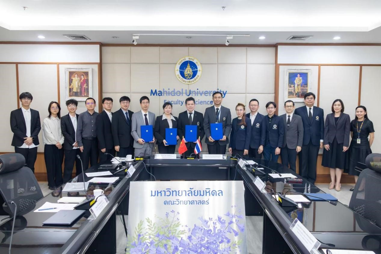 12月3日,成人漫画 与泰国玛希隆大学理学院在泰国曼谷举行合作签约仪式。玛希隆大学理学院院长Assoc.Prof.Prasit Suwannalert、副院长Assoc.Prof.Pasit Pakawatpanurut、Assoc.Prof.Wattana Weerachatyanukul、Dr.Rapee Boonplueang等9人代表团,成人漫画 副院长李艳梅、吴锦荣教授、谢正田副研究员、兀琪副研究员等8人代表团参加仪式。
