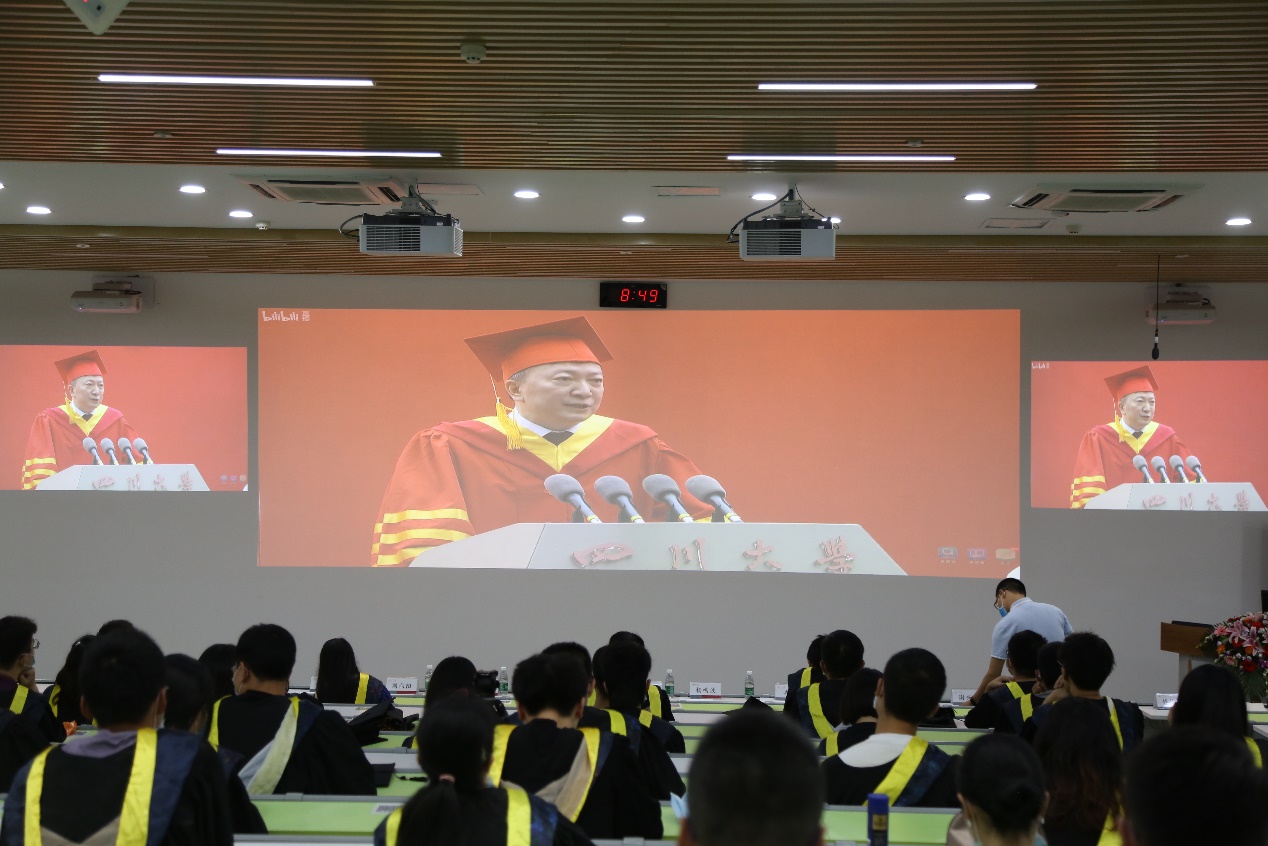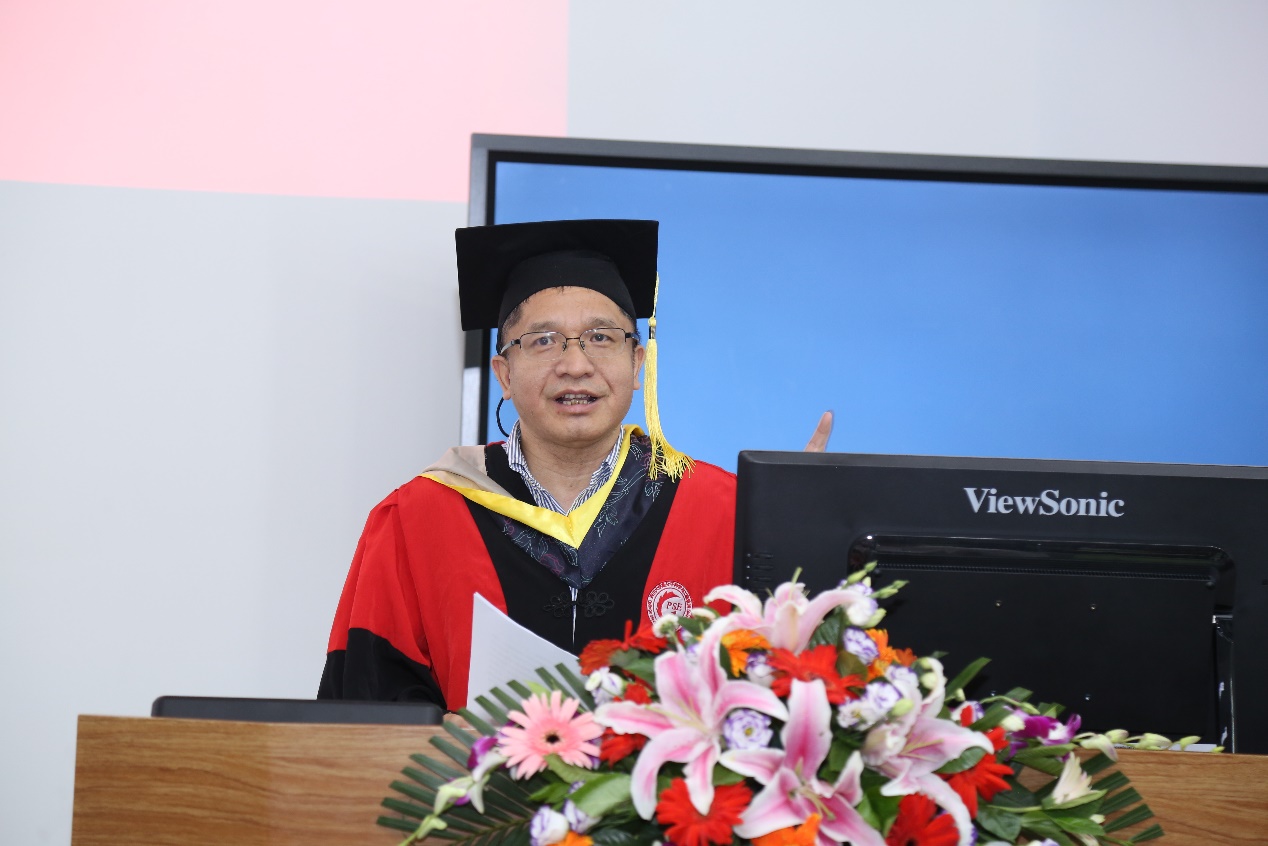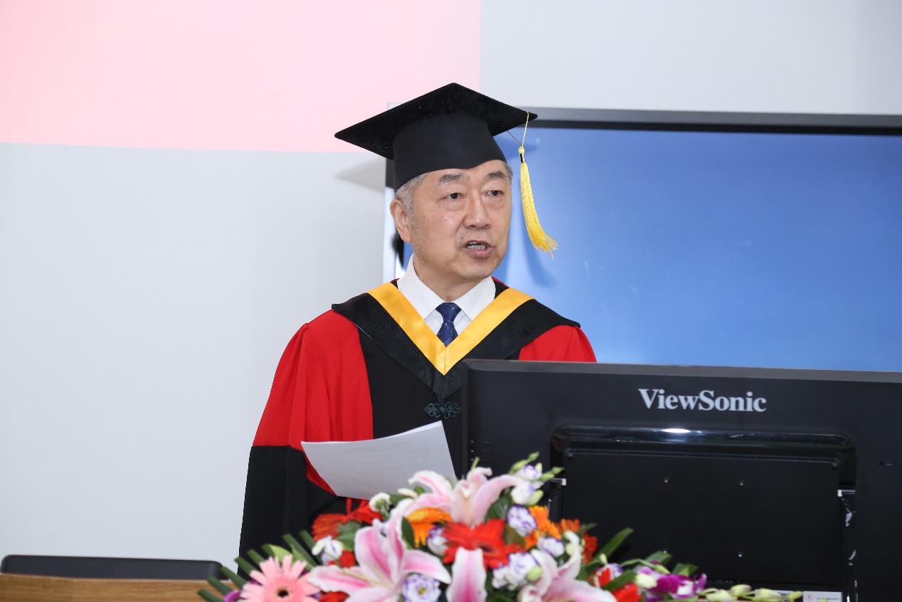 授位仪式上,院长傅强教授首先回顾了2020届毕业生在疫情防控形势下,师生共同努力,采取线上授课、指导毕业论文,线上线下答辩的方式,保质保量的完成了各项工作。他代表全院教师对2020届同学克服疫情影响并顺利毕业表示衷心的祝贺。离别之即,他对2020届毕业生提出了三点希望,希望同学们在未来生活工作中“不忘初心、爱岗敬业”,“保持定力,乐观向上”,“终身学习,勇于创新”,无论同学们走到哪里,获得成功或是经历坎坷,学院永远是温馨的家!