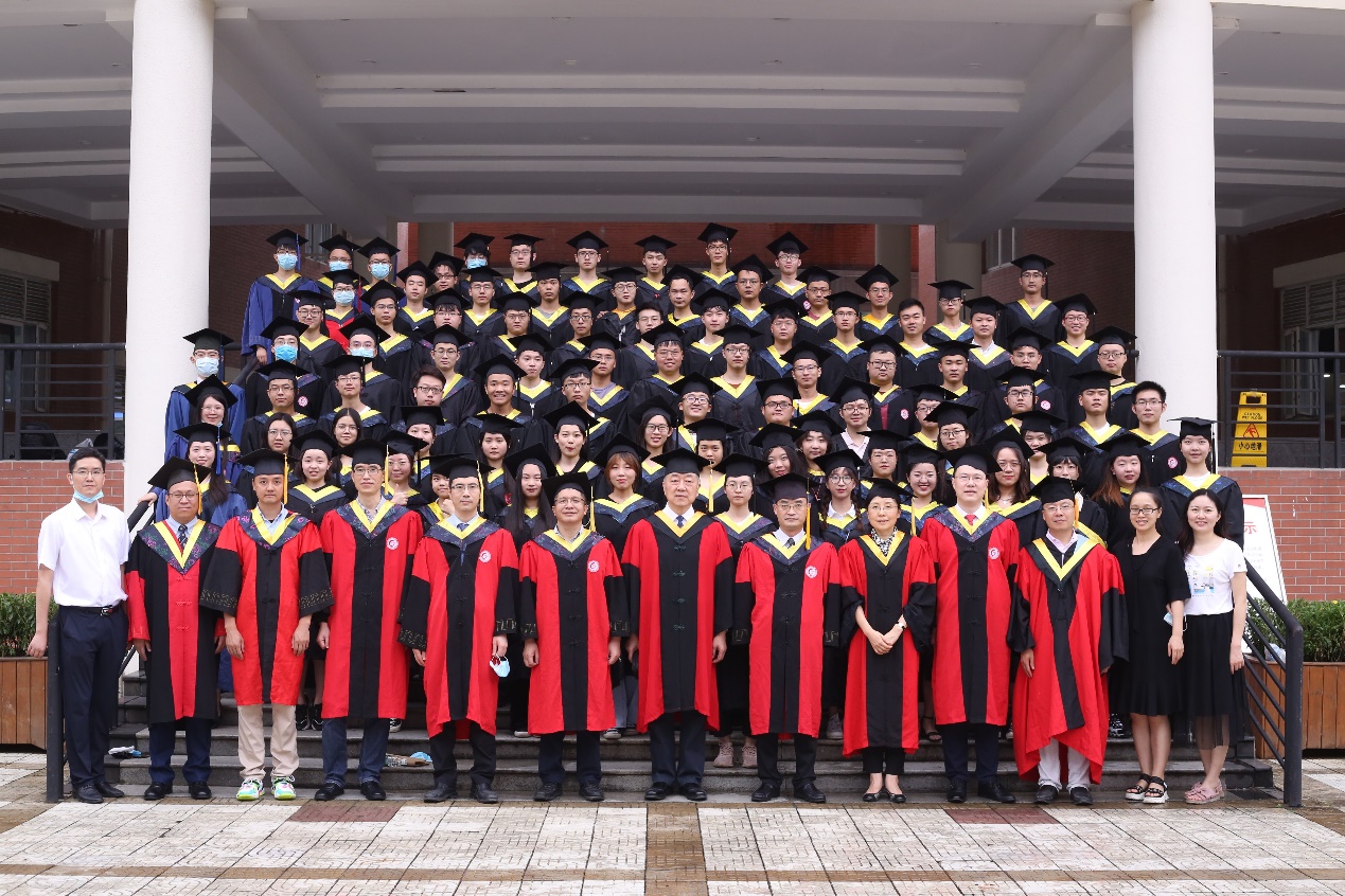 最后,学院领导、教授为2020届毕业生代表授位,颁发学位证书。学院领导、教师代表与毕业生代表进行合影留念。