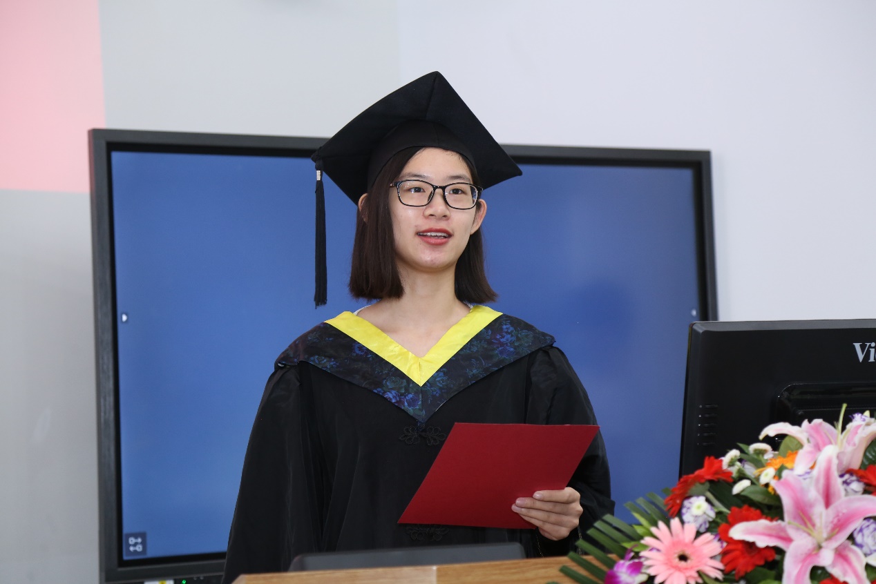 2020届毕业生代表、四川省优秀毕业生吕春燕同学分享了她在学院四年学习的感受,她感慨学院对学生无微不至的关心,感谢老师们悉心的指导和培养,展望未来,满怀信心。