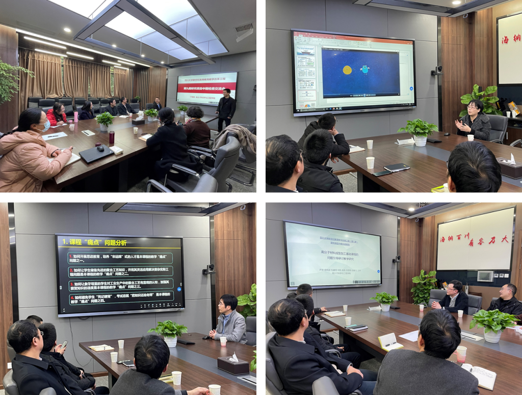 为促进教改项目建设,提升项目研究质量,成人漫画 于2022年3月2日在高分子学院科教楼207会议室开展了成人漫画 新世纪高等教育教学改革项目工程(第九期)研究项目(重点项目1项,面上项目7项)及高分子学院本科教育教学改革(第一期)研究项目(5项)中期检查交流会,由学院教学院长冉蓉教授、督导组张卫勤副教授、凌红副教授组成项目中期检查小组。各项目主持人、教务处教研科李晶莹老师参加了此次交流会。会议由教学院长冉蓉教授主持。