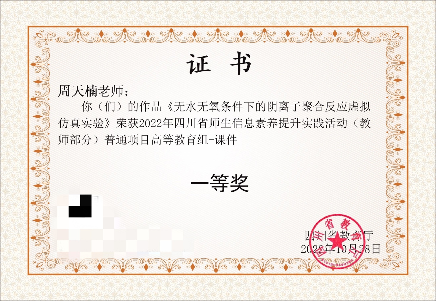 11月28日,2022年四川省师生信息素养提升实践活动(教师部分)获奖名单揭晓,经全省1383件作品严格评审,成人漫画 周天楠老师的参赛作品荣获一等奖。