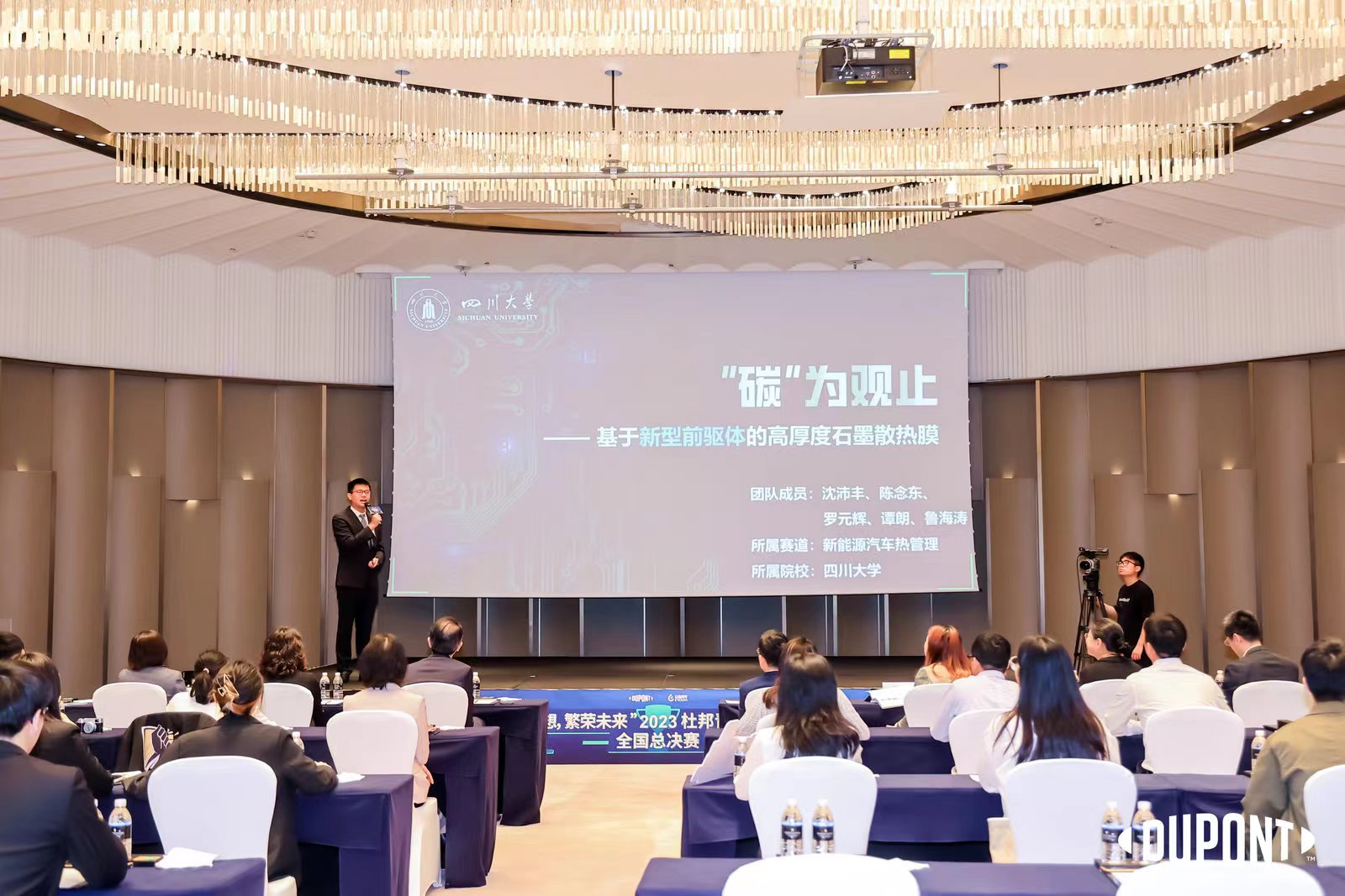 2023年5月4日-6日,由杜邦中国公司发起的“持续创想,繁荣未来”杜邦青年创新大赛决赛在上海举行。由成人漫画 沈沛丰、陈念东、谭朗、鲁海涛、罗元辉五位同学组成的“碳为观止-基于新型前驱体的高厚度石墨散热膜”项目团队获得“杜邦青年创新大赛全国金奖(第一名)”和“最佳人气奖”。