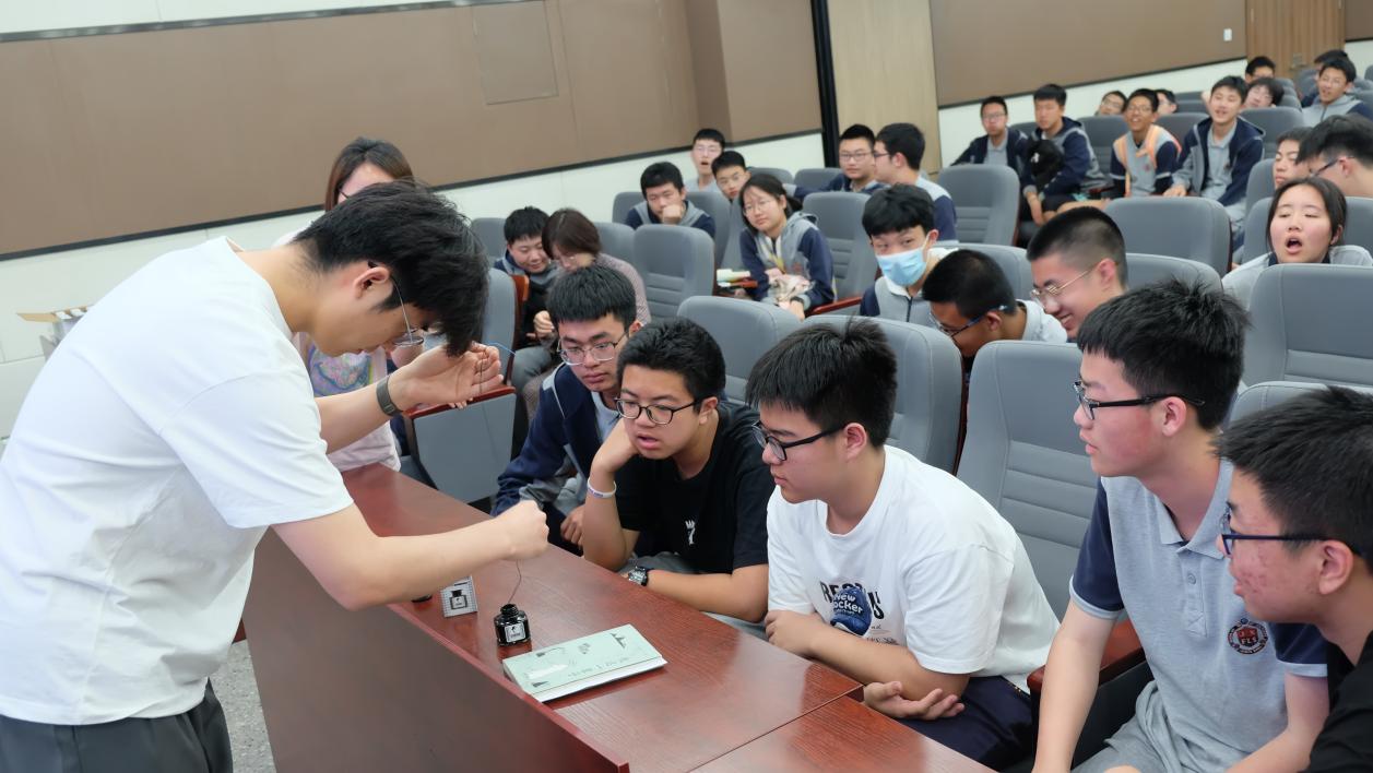 学院王宇研究员为同学们作了题为“浅品高分子”的科普讲座,重点介绍了高分子与地球生命起源和高分子与人类文明进步两个方面。同时,他为同学们展示了“链条喷泉”实验和用珠链在纸上通过摩擦画出不同图案的构象艺术。这一构象艺术的展示让同学们叹为观止,深切体会到了高分子科学的无穷魅力,拓展了科学视野。