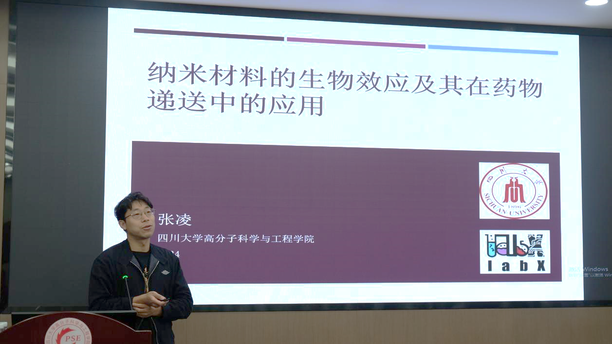 医用高分子材料系青年教师张凌作了题为“纳米材料的生物效应及其在药物递送中的应用”的报告。报告主要讨论了微纳塑料、仿生纳米制剂等纳米材料的生物效应及其在药物递送中的应用。报告指出,微纳塑料已在多种人体生物样品中发现其存在,包括粪便、胎盘、血液等,因此亟需探究其对人类和环境造成的影响。通过研究微纳塑料对动物肠道菌群的作用规律,结合生态学等交叉学科,将推进探索微纳塑料体内命运的研究进展。报告也对纳米材料的仿生功能进行了介绍,仿生制剂通常通过模拟天然对象以达到特定的功能,一般分为结构仿生、材料仿生、反应仿生等。研究通过减法策略对仿生功能进行优化,例如磷脂替代策略、胆固醇消减策略等,以赋予其目标功能和理想命运。最后,针对无法治愈的尘肺疾病,报告讨论了通过构建精细化长期队列,利用多组学机理和干预靶点突破尘肺肺纤维化研究瓶颈、开发预防尘肺或改善病人健康的诊疗方案的可行性和有效性。