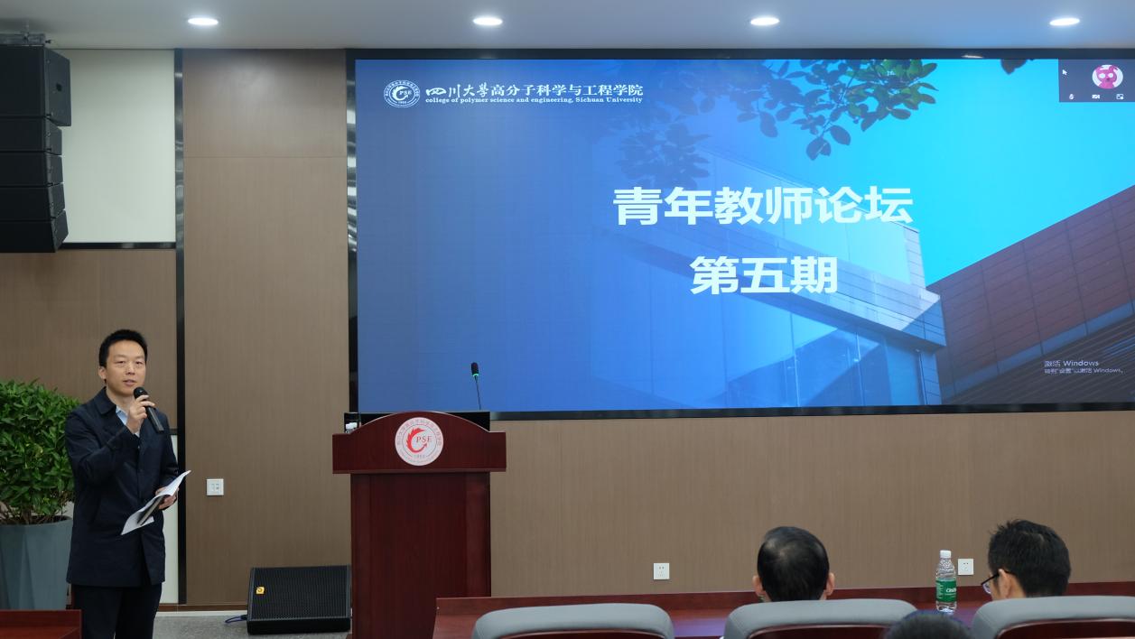 4月26日上午,学院第五期青年教师学术论坛在高分子学院科教楼209报告厅举行。成都掌起科技负责人及医用高分子材料系两位青年教师作汇报交流,报告由医用高分子材料系主任丁明明主持,院长杨伟对青年教师的报告进行逐一点评并对其研究方向和思路给出了建议。