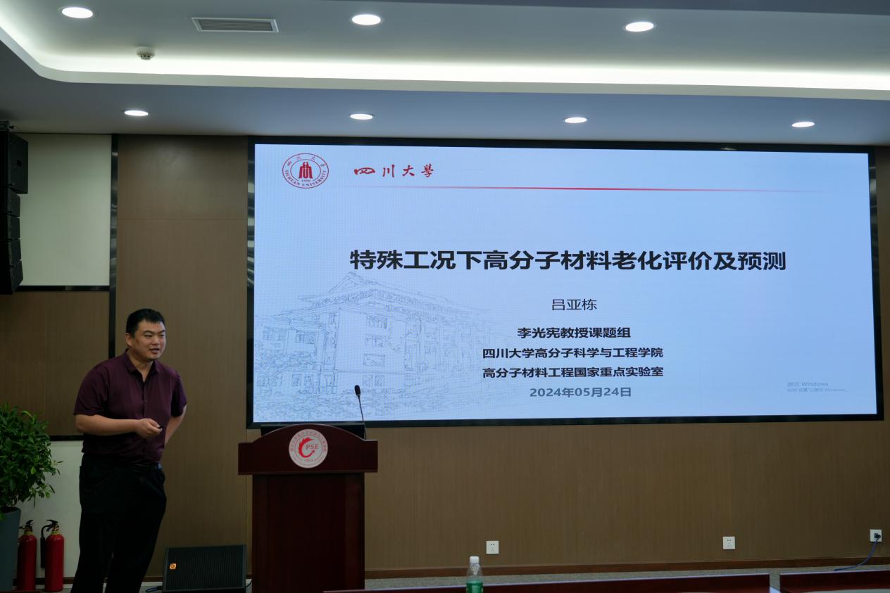 材料加工工程系青年教师吕亚栋作了题为“高分子材料老化评价及预测”的报告。高分子材料在复杂严酷条件下的长期服役可靠性问题正成为制约我国战略新兴产业发展升级和满足国家重大战略需求的重要瓶颈,也逐渐成为材料领域的重要研究前沿和热点。报告围绕光伏组件用高分子材料以及飞行器功能涂层复杂材料体系在特殊严苛服役环境及工况下的长期服役可靠性问题开展了研究,研制了能够模拟实际服役工况多因素同时施加的加速老化新装置,揭示了多因素耦合加速老化机制,建立了科学高效的加速老化评价新方法,并进一步提出了针对小样本的多因素耦合累积损伤寿命预测新思路,从而为关键装备及材料的长期服役稳定运行提供有力保障。