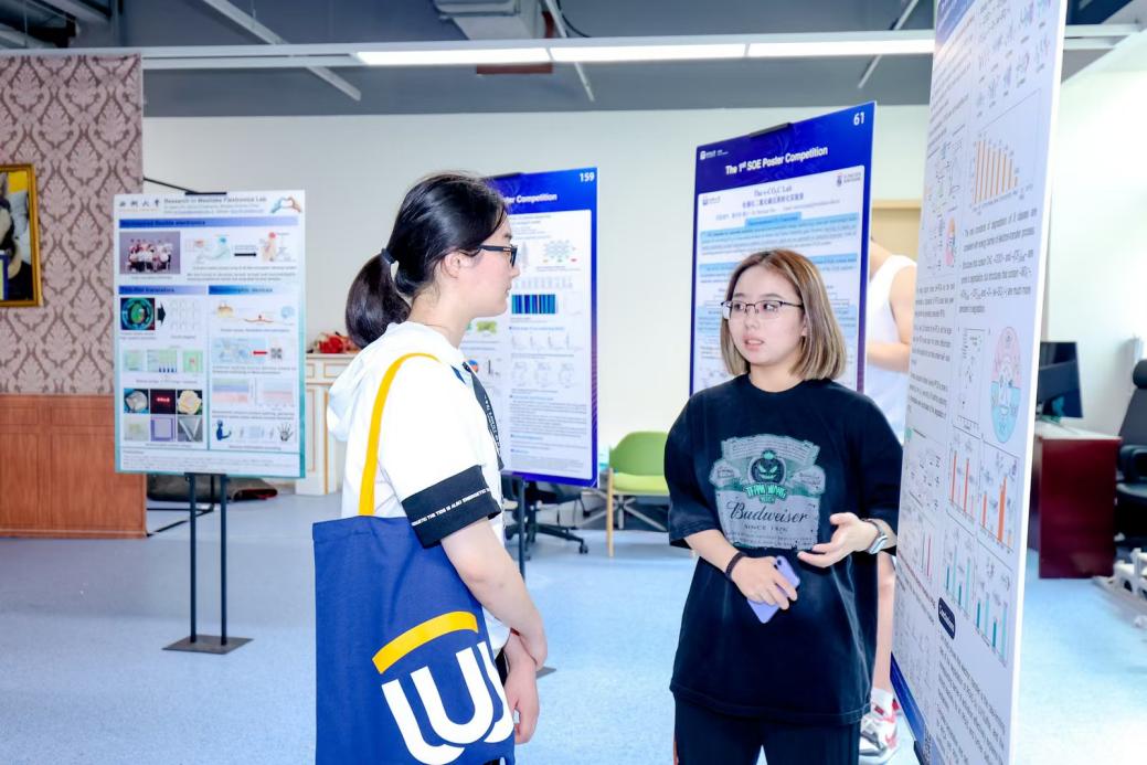 在校园参观完毕后,同学们通过海报展,了解了来自各大实验室学长学姐的研究成果,同学们认真地聆听每一位负责人的介绍,并适时提出自己的疑问,同负责人交流讨论。此外,同学们也自由前往各大实验室与老师面对面进行交流。