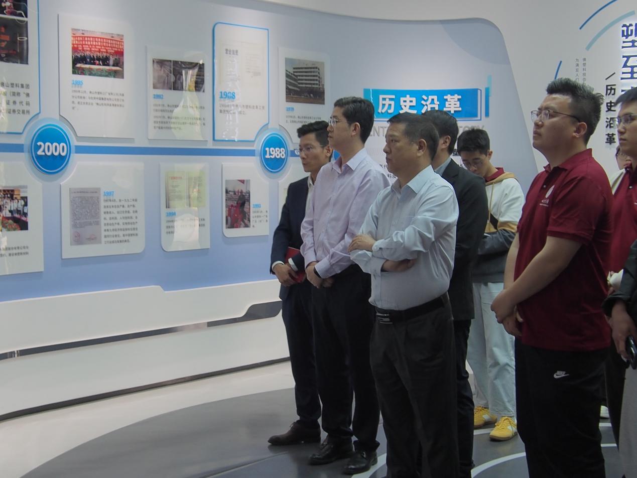 佛山佛塑科技集团是粤港澳大湾区新型薄膜材料产业领军企业,以新能源材料与光电薄膜为核心,引领传统制造向绿色智造转型升级。在佛山佛塑科技集团股份有限公司,学院师生先后参观了企业数字化展厅、产品展示中心、员工活动中心、双向拉伸薄膜生产线,近距离观摩了应用于新能源汽车、电子信息等领域的高分子材料产品。参观结束后,双方举行座谈会,就高校和企业在产教深度融合、校企协同创新育人模式,助力企业新质生产力发展等方面展开了深入交流。