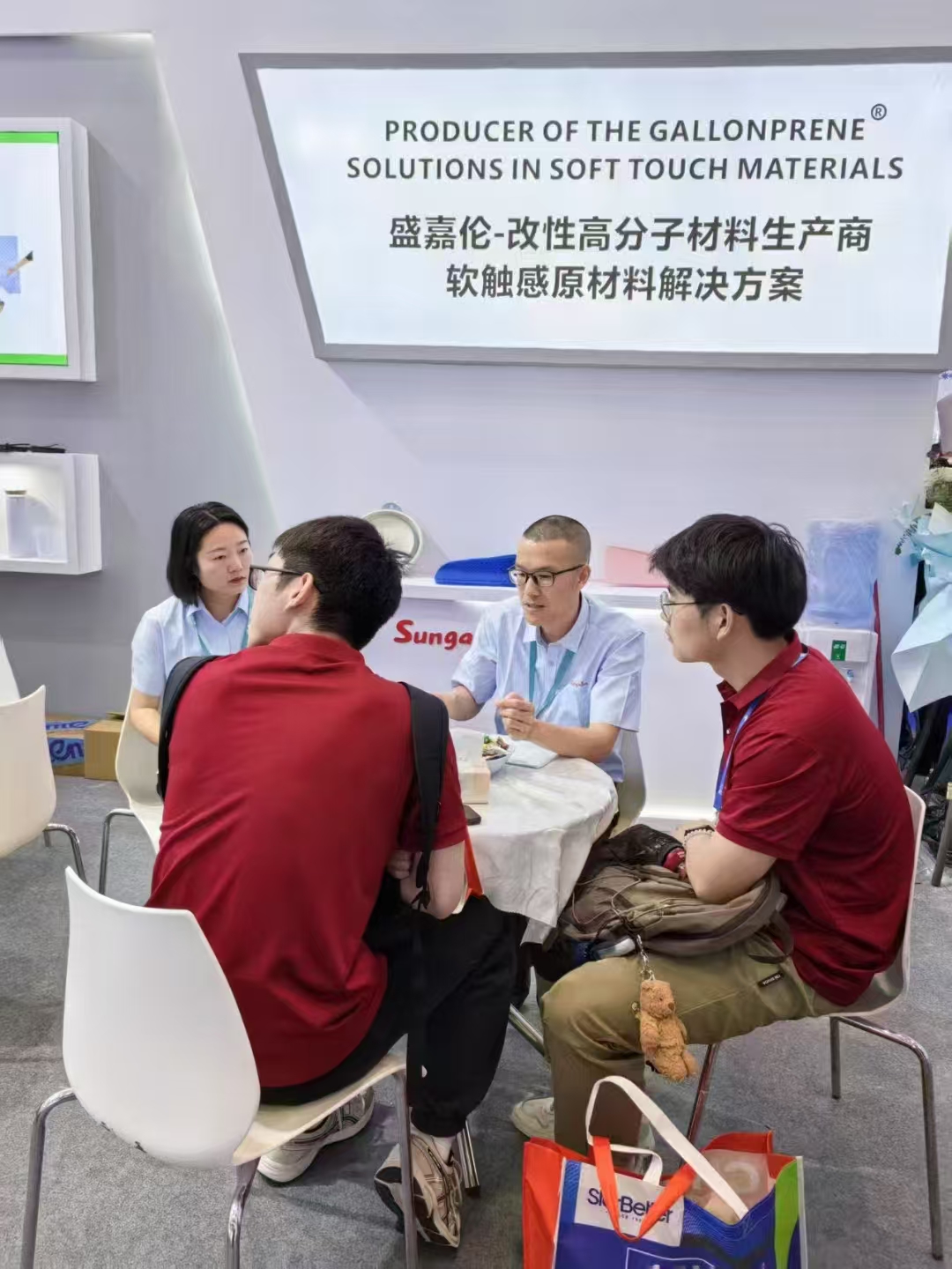 展会集中展示生物基材料、再生塑料及低碳技术。学院师生分组参观,自由探索这片“高新科技的天空”——可回收包装设计(D4R)项目中的单一材质聚乙烯阻隔膜技术,生物基衣康酸酯橡胶和医用透气弹性材料,再生材料运动鞋与凉感T恤,48腔连体水盖生产线的超高速周期运作等前沿技术与领域动态。“这场展会像一本立体的行业教科书”,同学们积极联系运用所学专业知识,主动与参展商和技术人员交流探讨,在参观学习的途中了解高分子领域发展趋势及技术热点。