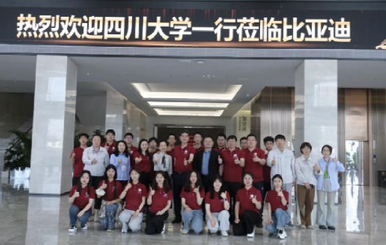 比亚迪股份有限公司是一家全球领先的新能源汽车及高新技术企业,公司业务横跨汽车、轨道交流、新能源和电子四大产业,是世界500强企业。在比亚迪股份有限公司深圳总部,师生参观了比亚迪技术展厅,了解了比亚迪旗下不同车型的研发技术与科技创新,深入探索了高分子材料在轻量化车身、动力电池隔膜、高性能复合材料等关键部件中的应用,近距离感受民族企业在新能源汽车与新材料领域的卓越成就。座谈会上,比亚迪集团招聘总监许云龙,电池事业群技术战略与创新业务部经理、成人漫画 03级本科校友朱燕,电池事业群CE与电极技术开发部经理、川大物理学院校友王良俊,电池事业群技术战略与创新业务部副经理崔玮等公司代表就企业历史渊源、公司发展规划、人才引进政策、深化校企合作等方面展开了深入交流。