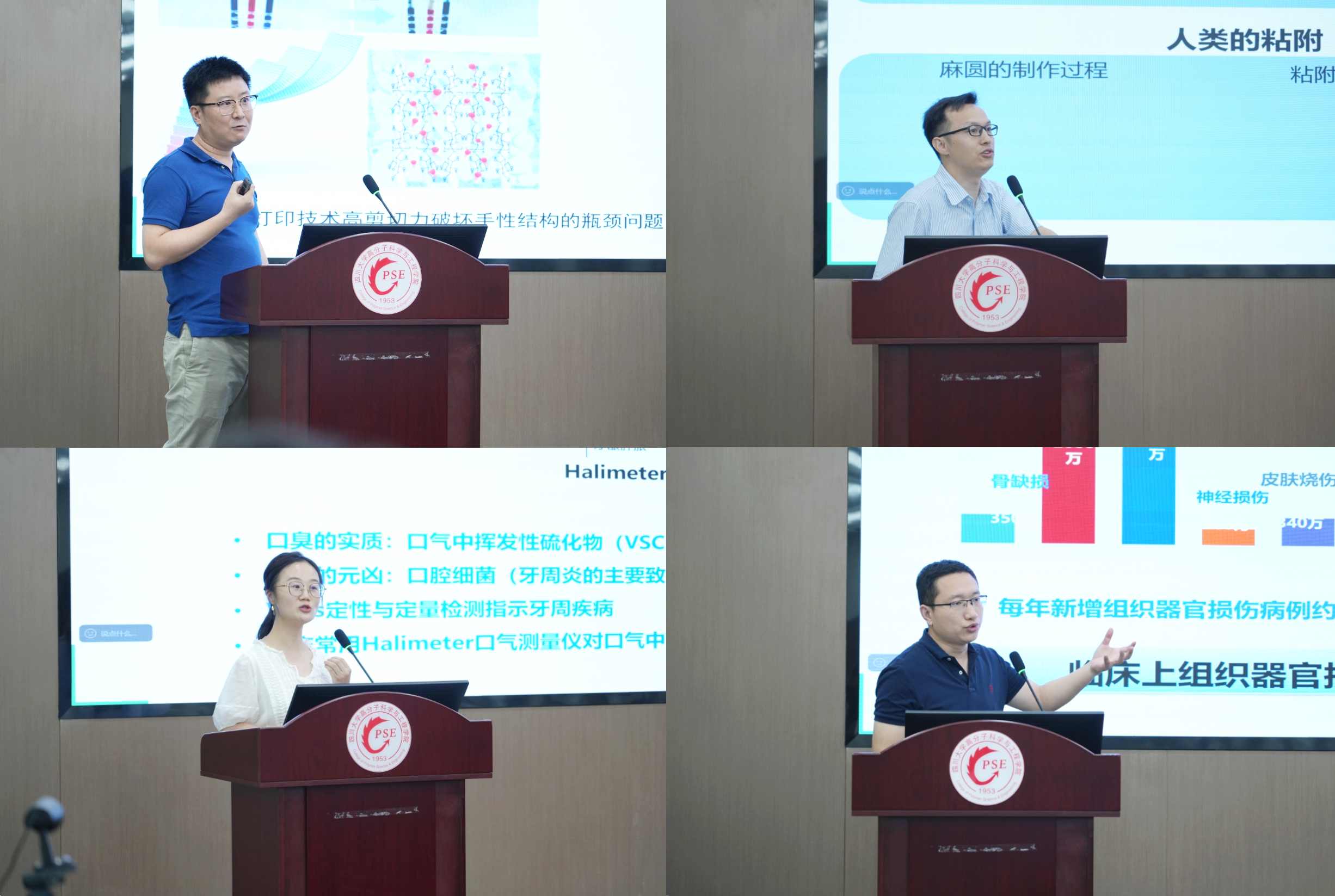专家报告环节,熊锐围绕“纳米纤维素手性光子材料”、王宇围绕“微粘控加工与先进能源材料”、秦萌围绕“生物医用结构色水凝胶”、程冲围绕“高分子人造酶医学材料”这四个高分子新兴前沿交叉方向,介绍了各自课题组的科研最新进展。
