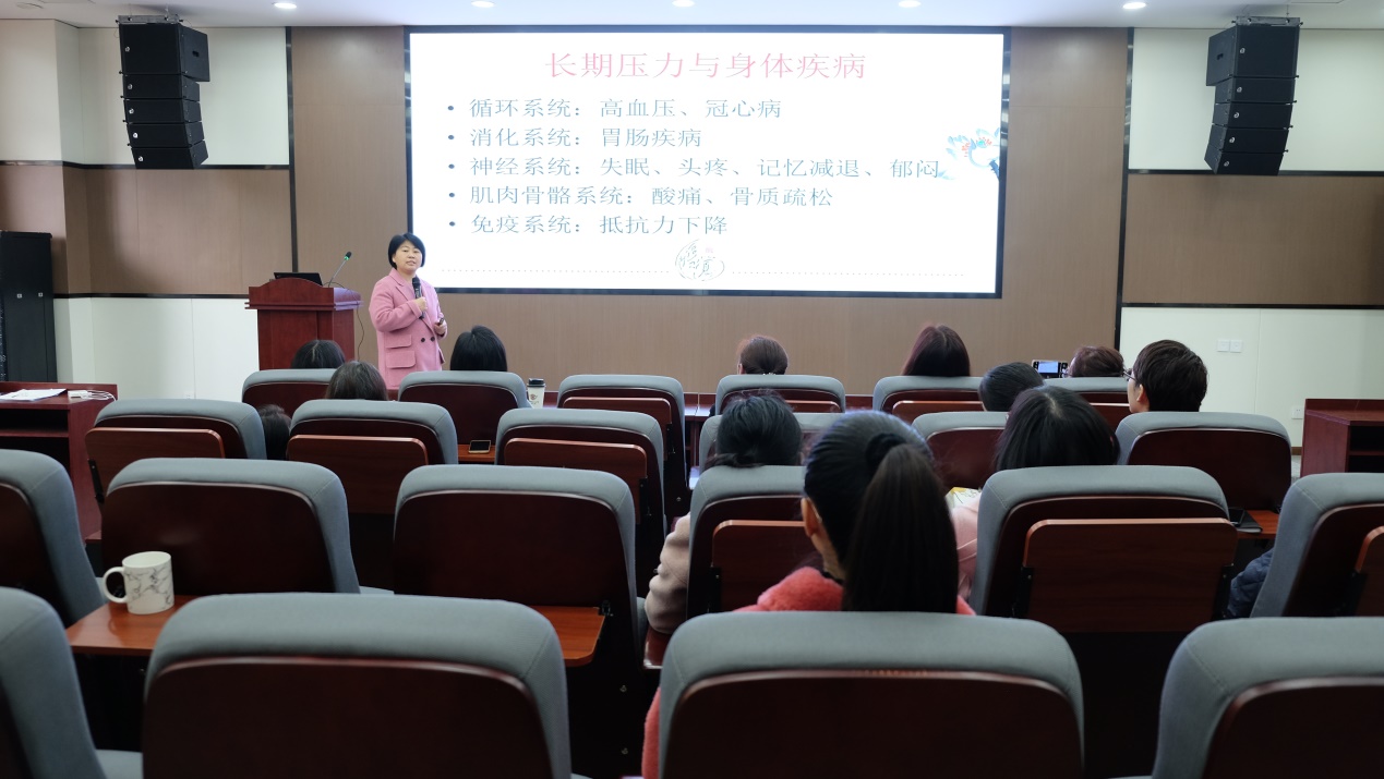 王英梅老师首先提到人人都有压力,压力有不同的种类,长期压力会导致各种身体疾病;如何缓解压力,结合得觉“自我”理论,要积极与自己交流、与他人对话,不断平衡自我;指出,家是社会的细胞、自己的安全港湾、躯体和精神的安全归属地,是人工作和生活源源不断的加油站,讲座中通过生动形象的实例阐释了处理各种家庭问题的方式方法,指引大家探寻人生的幸福密码。讲座的氛围轻松愉悦,部分教职工也将自己生活中遇到的问题向王老师请教解决办法,通过交流都获得了比较满意的指导意见。