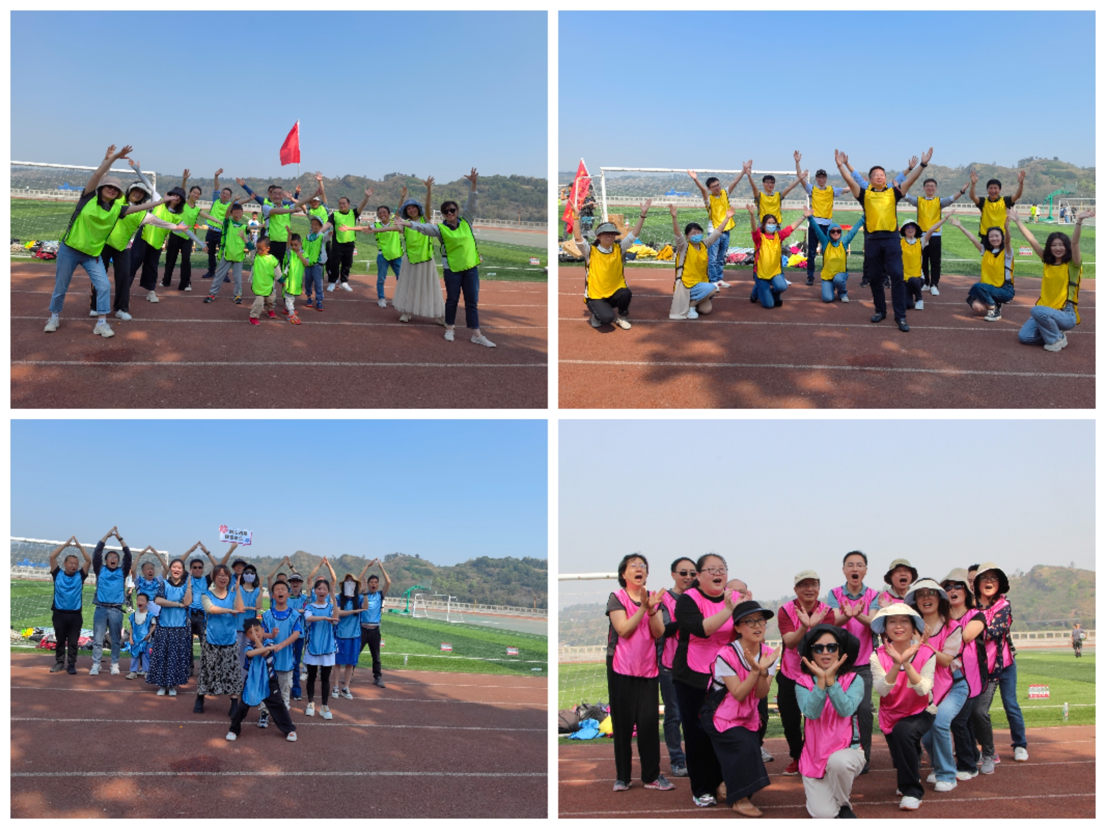 从“同院相见不相识”到“笑问尔之姓名来”,在这个阳光灿烂的日子里,本次团建活动以经典游戏“爱的抱抱”开场。在游戏中,大家紧紧搂住周边好友,笑作一团,拍拍背揉揉肩,为彼此放松身心。活动人员随机分成四组,大家换上青春洋溢的队服,集思广益后产生了拥有特色创意队名和响亮口号的四个小团队。