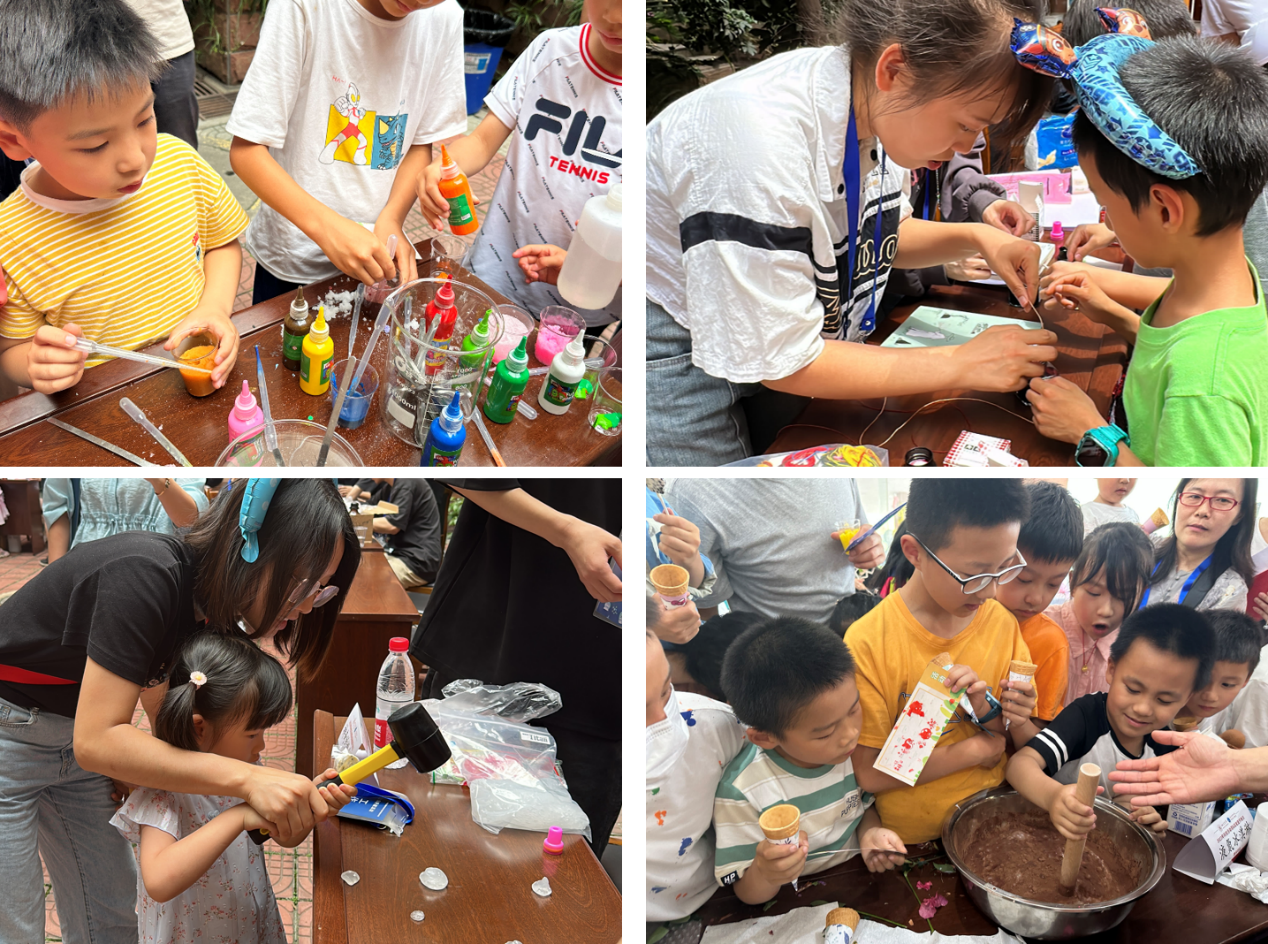 小朋友们在“高分子趣味科普实验”活动上亲身体验实验
