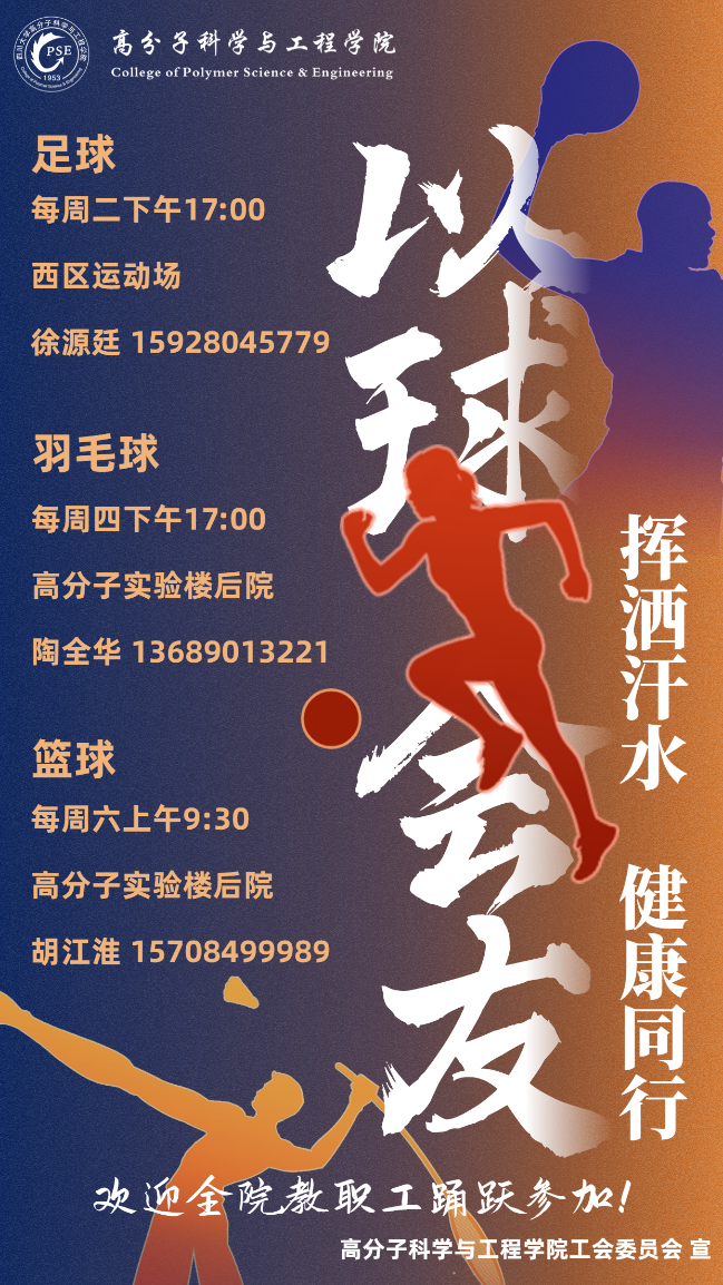 其中“以球会友”活动是本学期全民健身活动的重要组成部分,其中包含了羽毛球、足球和篮球的日常锻炼。每周二下午5:00,工会在西区运动场安排了足球训练,为热爱足球的教师们提供了一个交流技巧、增进情谊的平台。每周四下午5:00,工会在高分子实验楼后院设立了羽毛球场地,供教师们在此挥洒激情、强身健体。而每周六上午9:30,高分子实验楼后院、西区运动场则成为砥砺体魄、领略运动之乐的篮球训练场所。