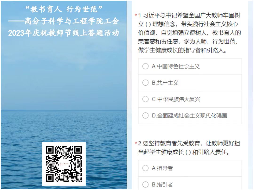 为深入学习贯彻习近平总书记关于教育的重要论述和指示批示精神,加强新形势下师德师风建设,提升广大教职工的思想政治素养和师德水平,增强爱岗敬业、教书育人的责任心和使命感,学院于9月9日-10日举行“教书育人、行为世范”师德师风专题线上知识竞答活动,共计180余位教职工参与此次活动。