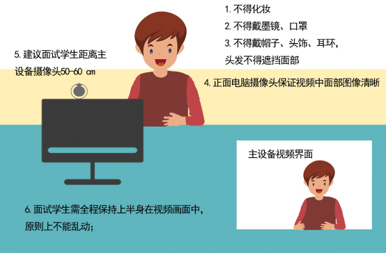 请同学们提前做好软硬件准备,在测试及面试时,开启摄像头及音频设备(具体要求见示意图1)。6月8日前加入2020高分子转专业QQ群,群号:219423717。