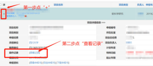 2.申报书如被退回,原因请看“操作记录”(见下图)。