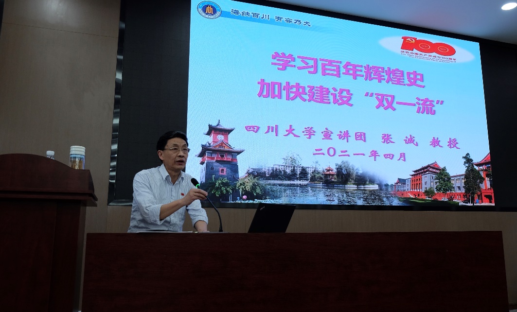 张诚以党的创新理论为指导,以“学习百年辉煌史,加快建设‘双一流’”为题,从“总体上把握好我们党的百年辉煌发展史,百年党史对我们奋进新时代的若干启示,把学习感悟转化为争创一流的实际行动”等三个方面,对百年党史的学习进行了全面系统的宣讲。