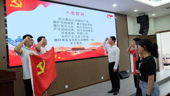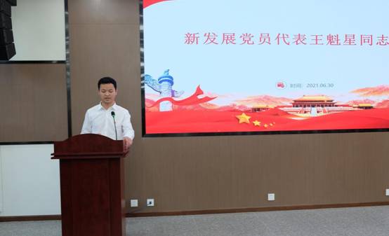 随后,进行了新党员入党宣誓仪式,在场全体党员一起重温了入党誓词。新发展学生党员王魁星同志作为代表进行了发言,他表示青年学生党员是传承和延续红色血脉的新生力量,作为预备党员和新时代的新青年,要以优秀党员为榜样,不断加强自身修养,时刻怀揣着对人民群众的赤诚之心,坚定理想信念,不忘初心,牢记使命,继续前行。