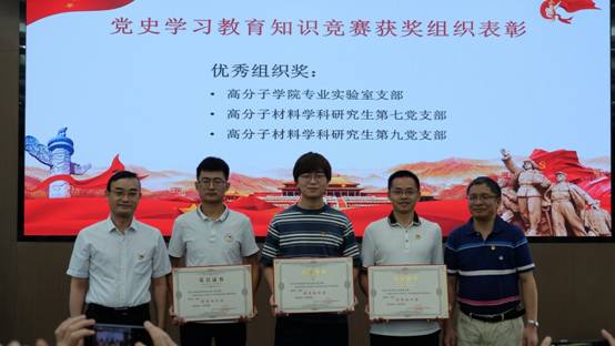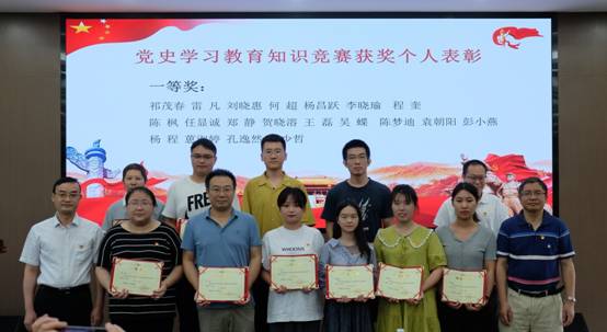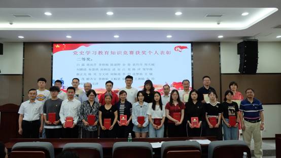 随后,党委委员、院长傅强同志宣读了学院党委的表彰决定。他指出,学院各党支部要大力宣传优秀共产党员和优秀党务工作者的先进事迹,教育和引导广大党员、干部认真学习先进,争当先进,以奋发有为的精神状态深入贯彻落实习近平新时代中国特色社会主义思想和党的十九大精神,全面推进学院党的建设新的伟大工程。会上,学院党委对赵伟锋等18名“优秀共产党员”、木肖玉等12名“优秀党务工作者”、3个党史学习教育知识竞赛优秀组织、100名党史学习教育知识竞赛优秀个人予以表彰。学院党委书记牟德富同志和院长傅强同志为优秀共产党员、优秀党务工作者,以及党史学习教育知识竞赛优秀组织和优秀个人颁发了获奖证书。