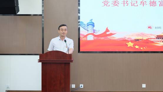 大会在庄严的国歌声中拉开序幕,全体人员起立奏唱国歌。学院党委书记牟德富同志作大会发言,他代表学院党委在庆祝建党100周年的时刻,向勤奋工作在教学、科研、管理等各条战线上的全体党员,向曾经为学科建设和发展做出贡献的离退休老党员,向努力奋斗、健康向上的青年党员表示节日的祝贺和诚挚的问候,向受到表彰的先进集体和个人表示热烈的祝贺并致以崇高的敬意。他指出,回望党的100年历史,是一部不忘初心、艰苦革命的革命历史,是一部牢记使命、砥砺奋进的奋斗史。每一个基层党支部、每名党员都要不忘初心和使命,筑牢根基,充分发挥战斗堡垒作用,发挥先锋模范作用。学院全体党员干部要坚守“四个意识”,落实“两个维护”,带领全体师生、全体高材人,紧紧围绕学院十四五规划,勇做改革建设的先行者、参与者和践行者,团结协作、履职尽责,为学院、学科建设不断迈上新台阶贡献智慧和力量!