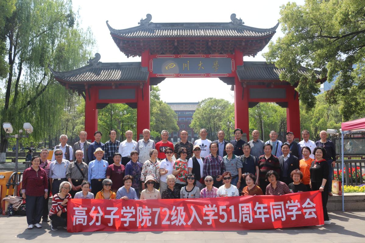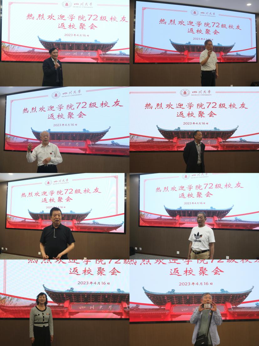 上午9点,校友们播放了往期返校及聚会活动的视频合集。随后,钱祉祺副书记代表学院致欢迎辞并向校友们汇报了学院近年来在学科发展、师资队伍、学术科研、人才培养及未来十四五规划等多个方面的成果情况,他指出,川大高分子现在的阶段性成就离不开一代又一代高材人的接续奋斗,希望校友们永远心系学院,继续关注关心支持学院的发展。自由交流环节,72级校友代表董祥忠、叶光斗、周国清、岑远荣、刘训良、王家全、孙晓峰、金桂英做了交流发言。他们深情回顾了上世纪70年代在川大校园学习的美好时光,回顾了毕业后在各行各业从业期间的奋斗历程,由衷地表达了在能在古稀之年再次回到母校学院的激动心情和对母校对学院的美好祝愿。下午,校友们先后游览了望江校区、江安校区,参观了现代化的教学楼和美丽的校园风光,深度感受川大在奋力建设具有中国特色世界一流大学征程上的奋进态势。一路上校友们或是回忆或是憧憬或是感慨,充满着欢声笑语。