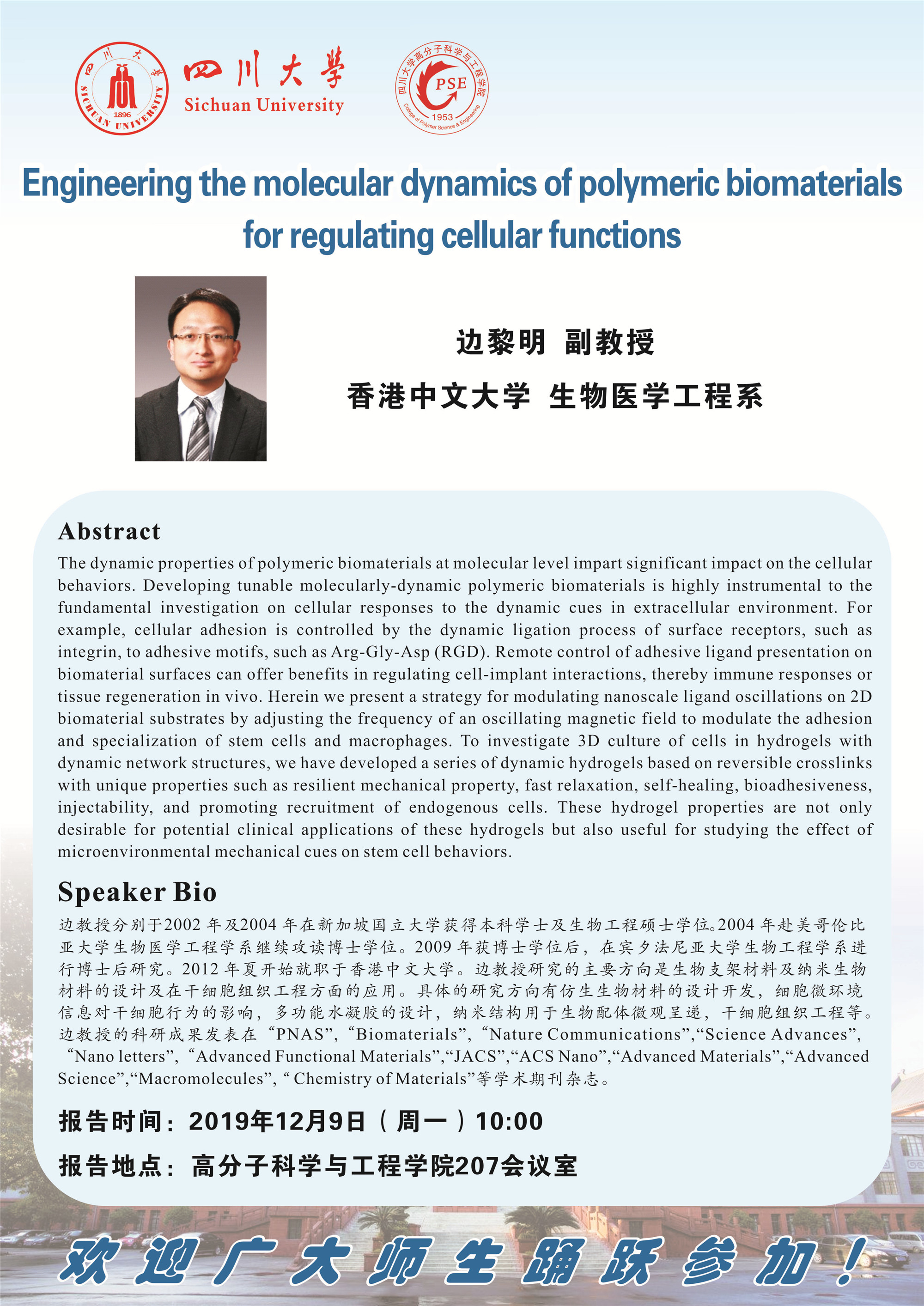 Engineering the molecular dynamics of polymeric biomaterials for regulating cellular functions