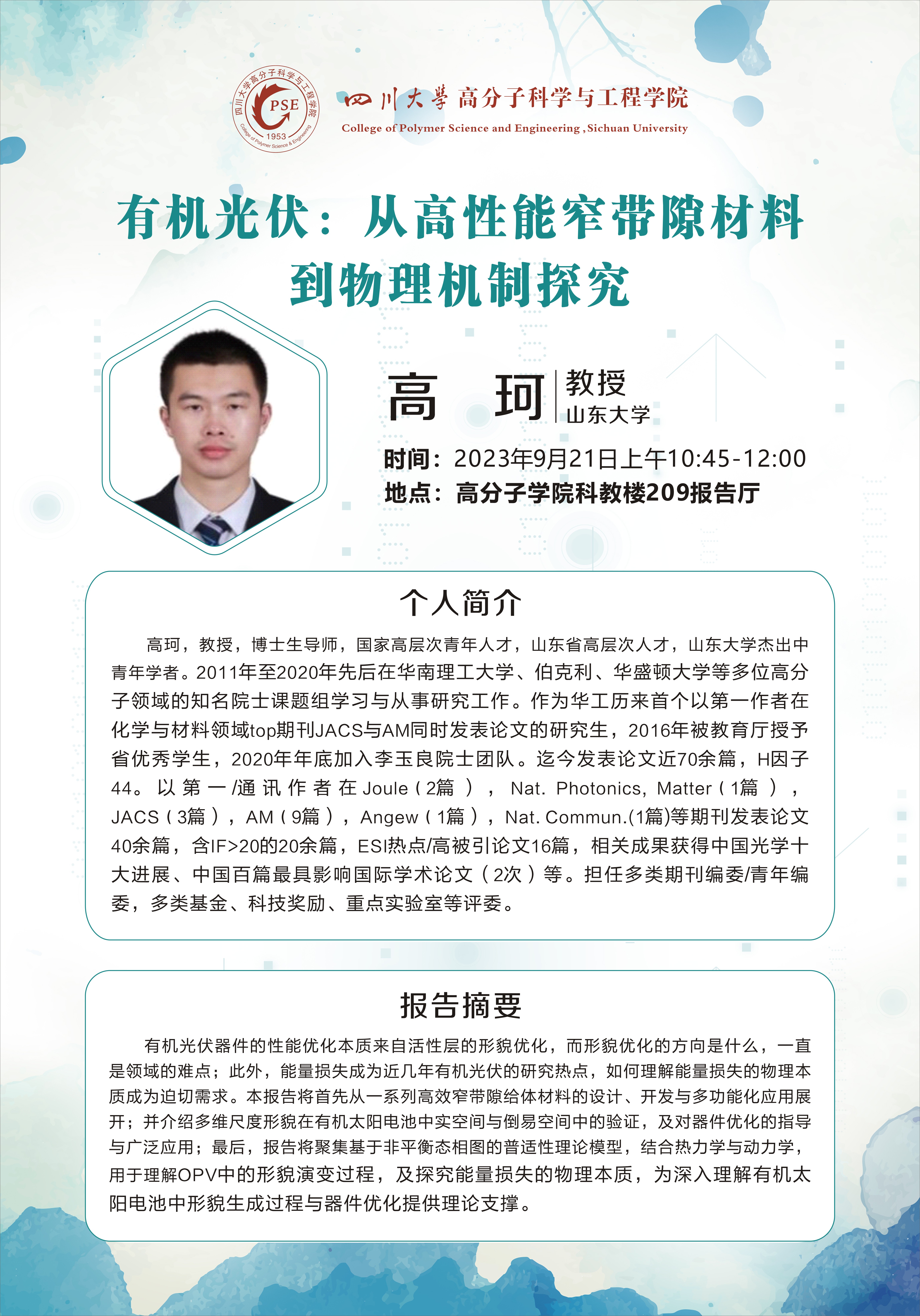学院吴锦荣/兀琪团队荣获第十九届“冯新德高分子奖” 最佳论文奖