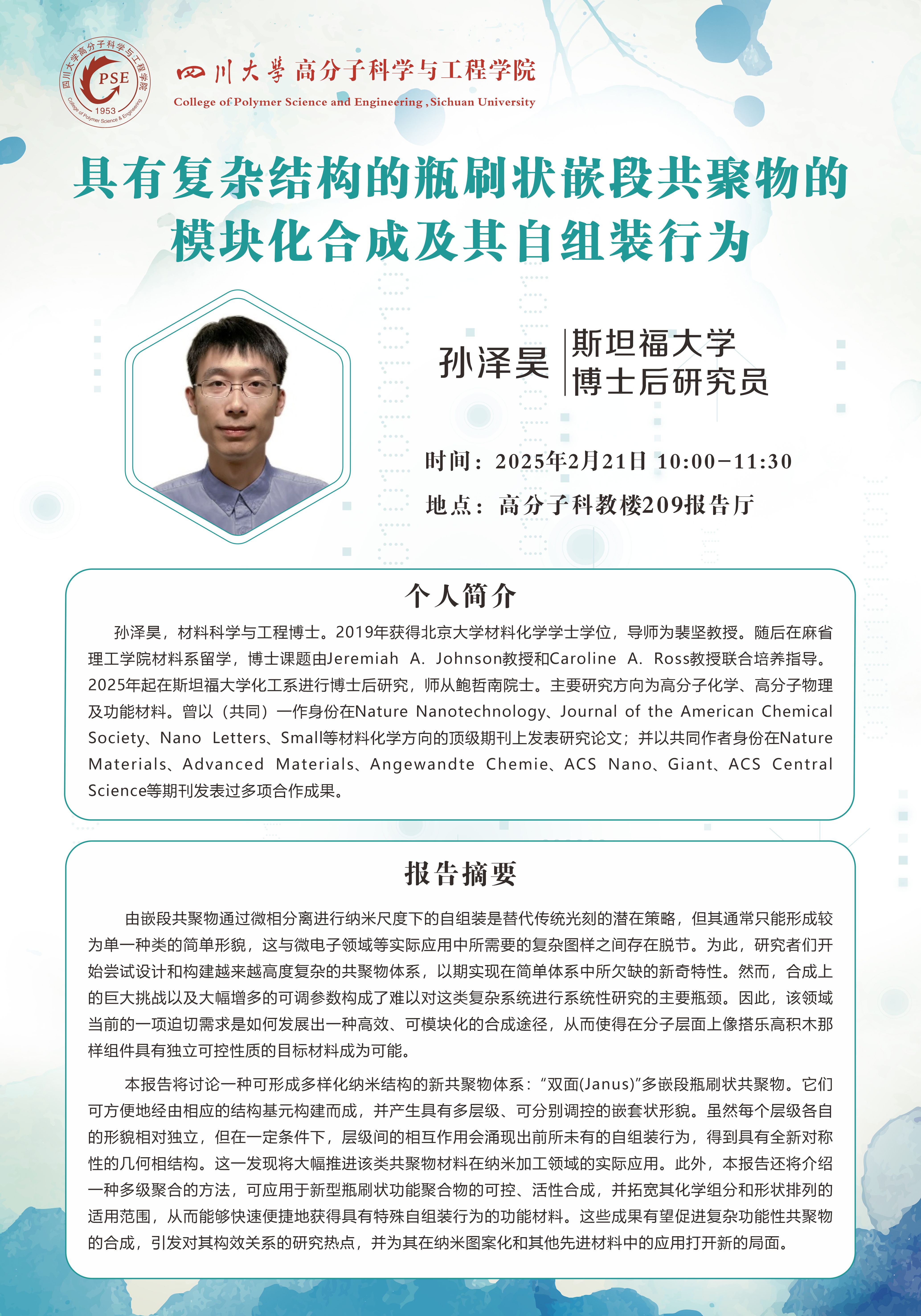 学院吴锦荣/兀琪团队荣获第十九届“冯新德高分子奖” 最佳论文奖