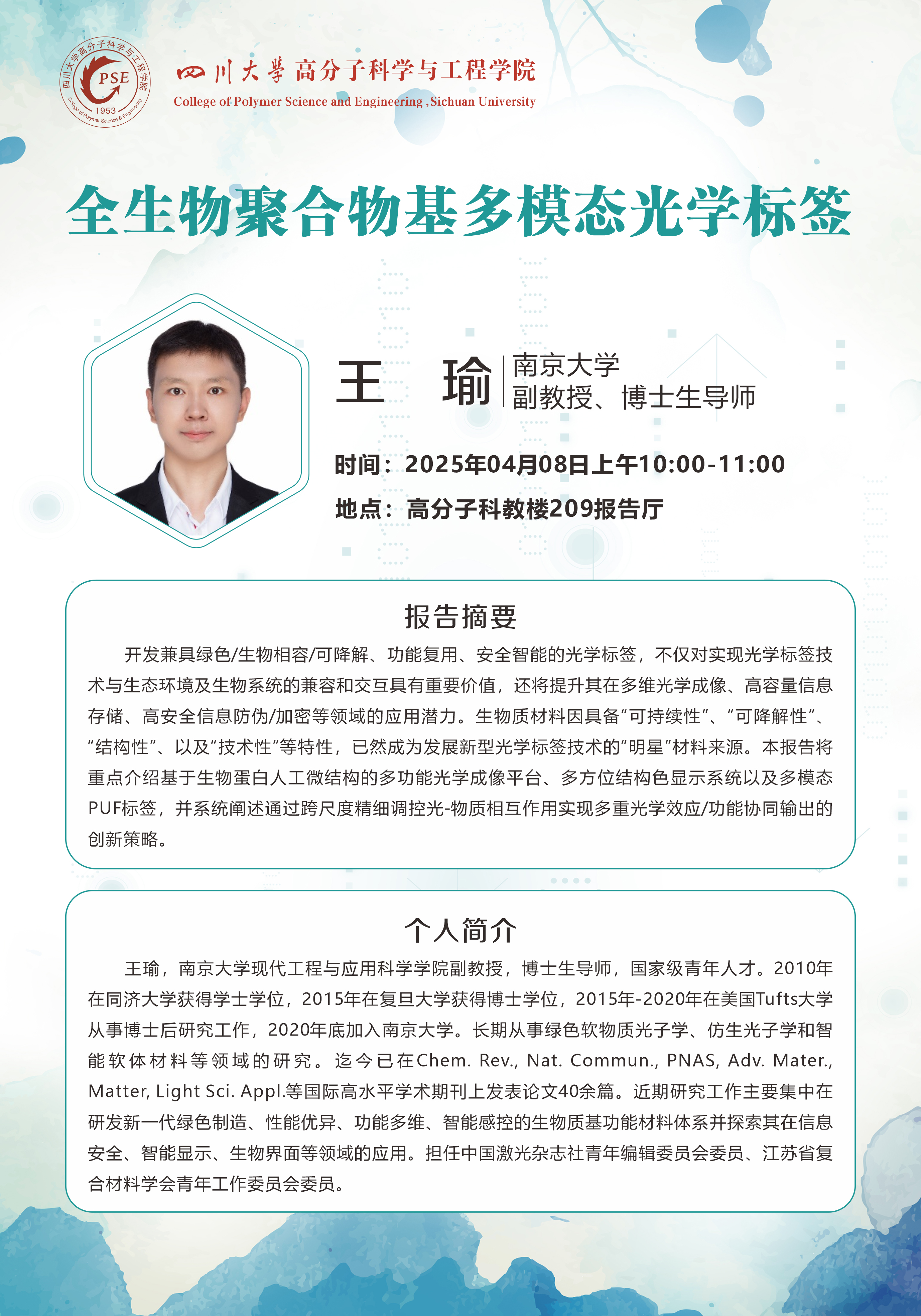 学院吴锦荣/兀琪团队荣获第十九届“冯新德高分子奖” 最佳论文奖